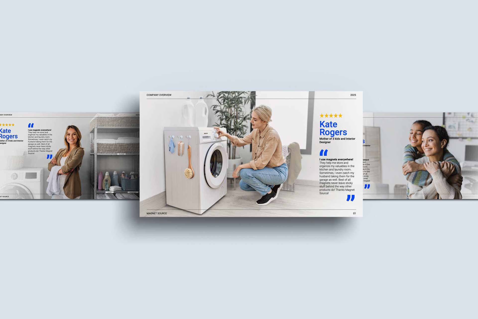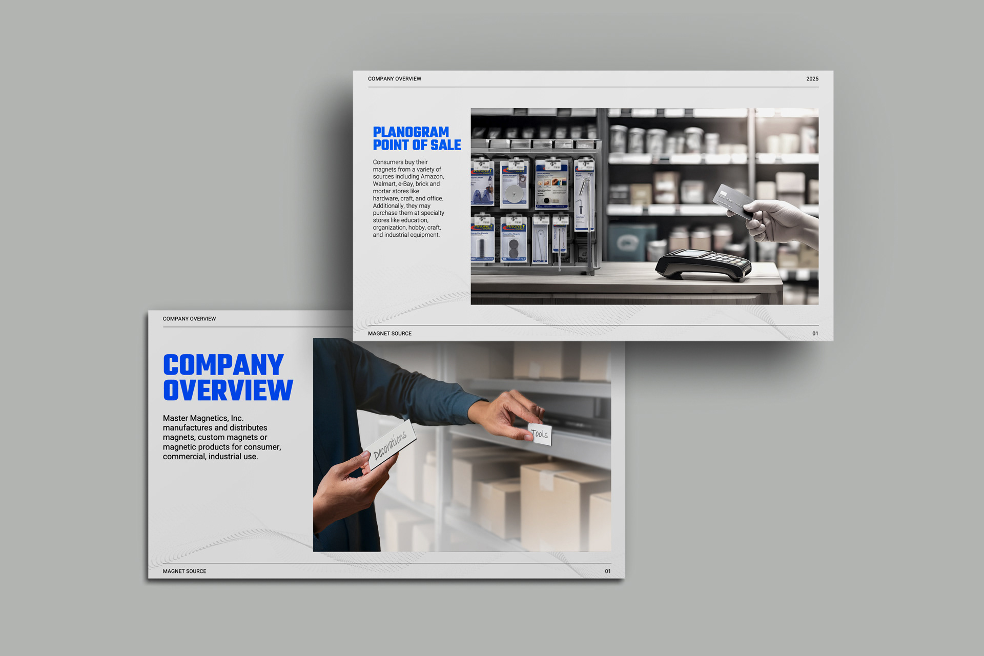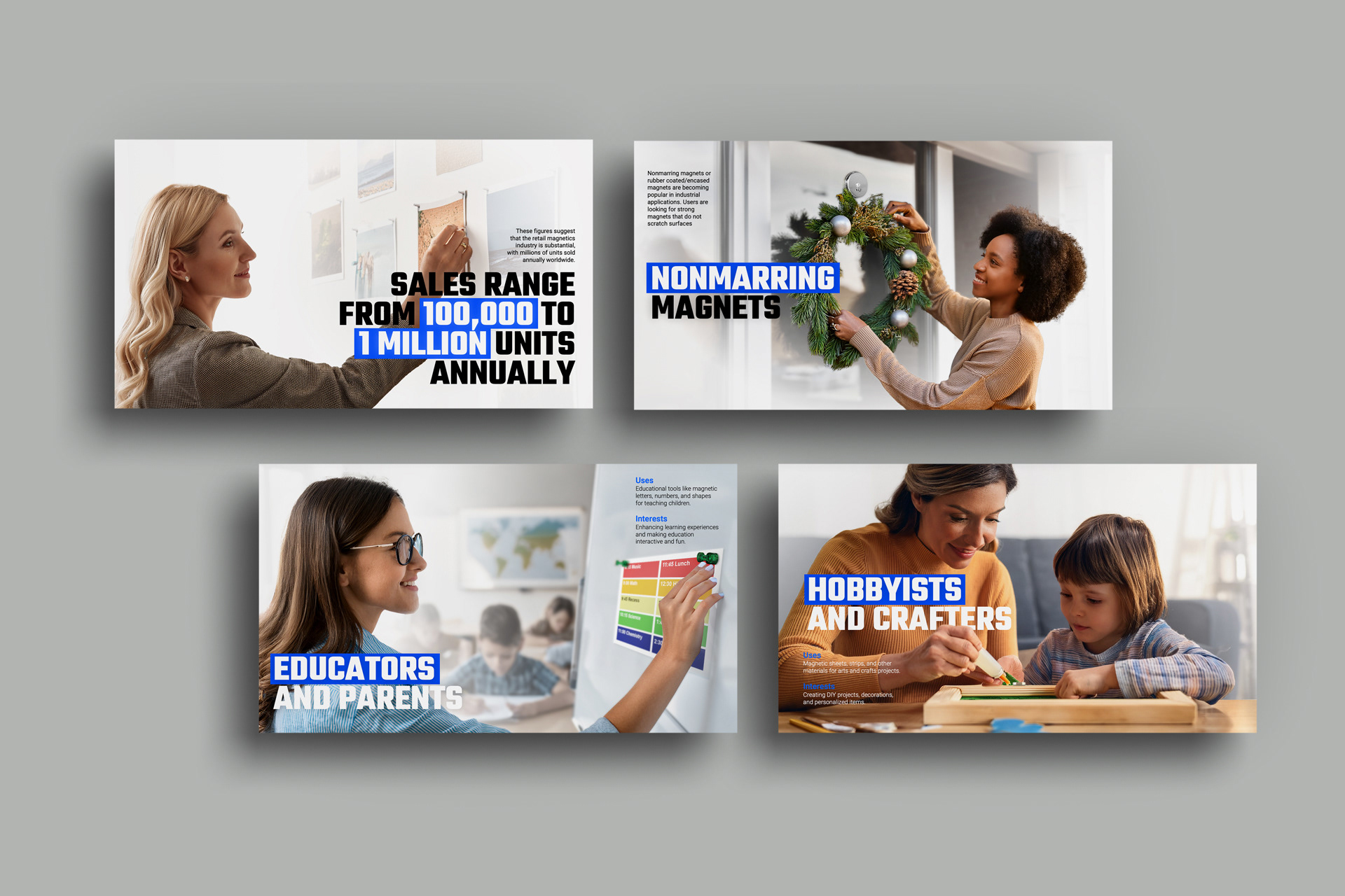 For Master Magnetics, I developed a visually driven presentation using AI-generated imagery tailored to showcase their magnet programs in realistic, lifestyle-based scenarios. These custom visuals helped clearly communicate product value while significantly reducing production time and costs by eliminating the need for traditional photoshoots. The AI-generated images were also designed to function as a reusable asset library, supporting future marketing materials, presentations, and social media content. This project highlights how thoughtfully applied AI tools can deliver flexible, brand-aligned visuals that save resources while elevating overall brand storytelling.